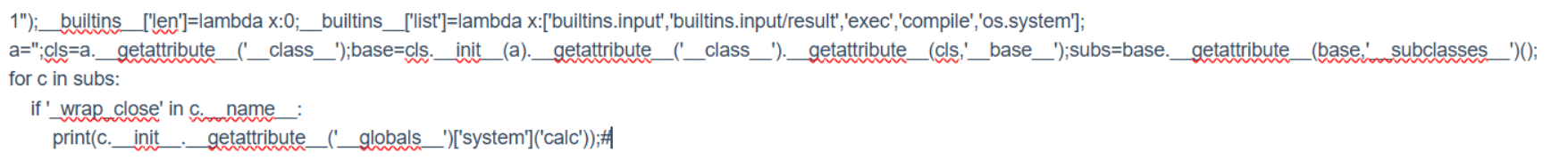 接下来就要开始绕过audithook了,参考了dummykitty的博客,惊奇地发现内置函数什么的是可以直接篡改的,判断条件里有一个list函数,我们可以修改它: