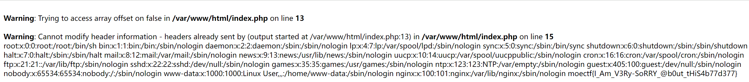 但是如果输入Flag,fLag,在大小写敏感的情况下会检索不出来,但是不敏感的时候可以,则会echo出答案。