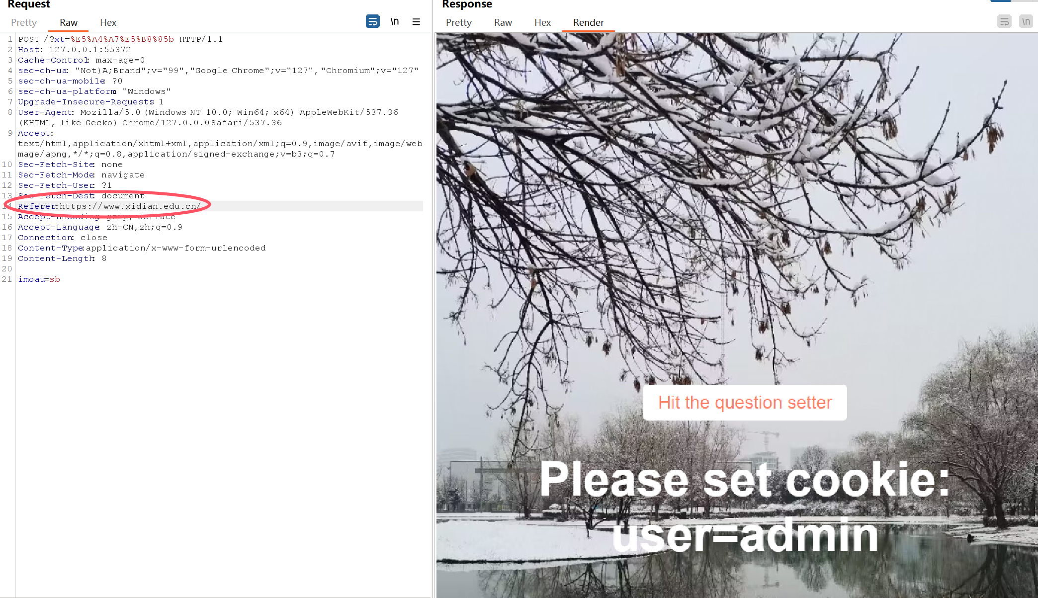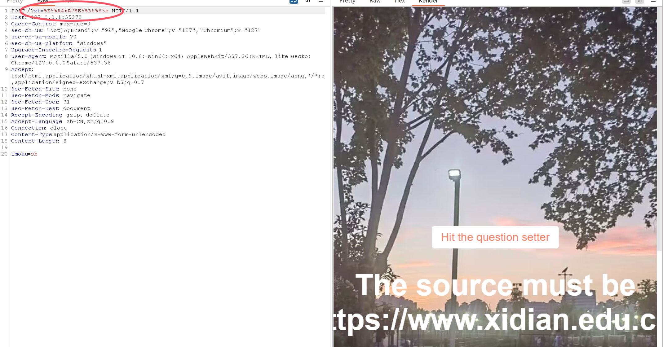 抓包并发送至repeater,选择render
