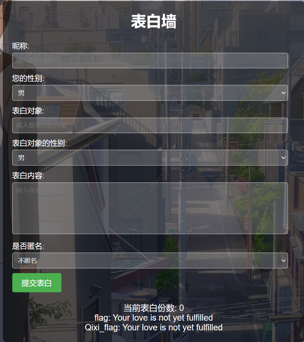 这里flag提示说’your love is not yet fulfilled’,那就代表要按照题目所说的表白300份