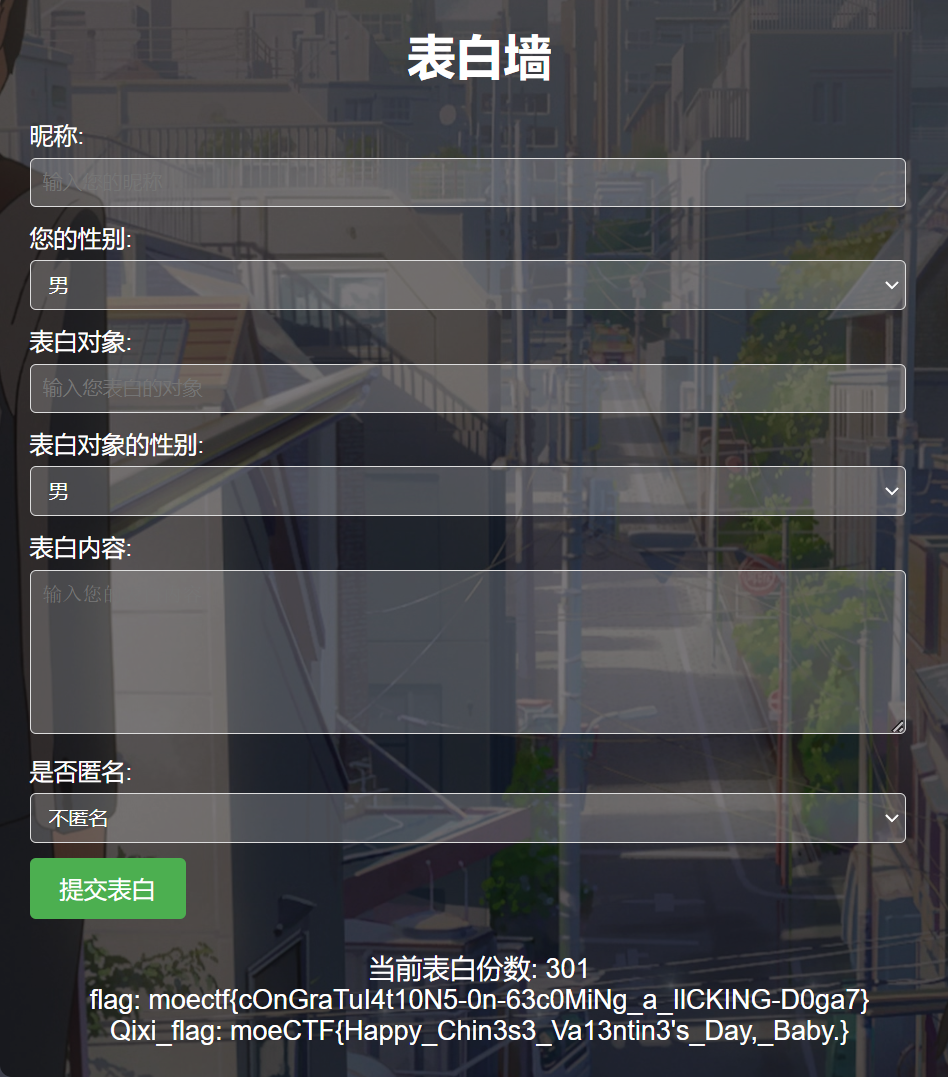 发送300+1条表白,表白成功,获得flag