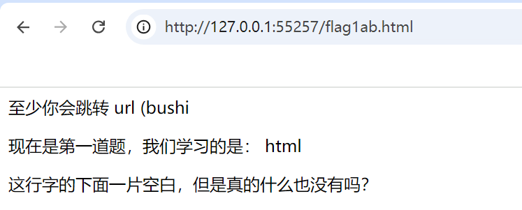 首先看到下面的一个HTML文件,直接url转跳进去,开始第一关。