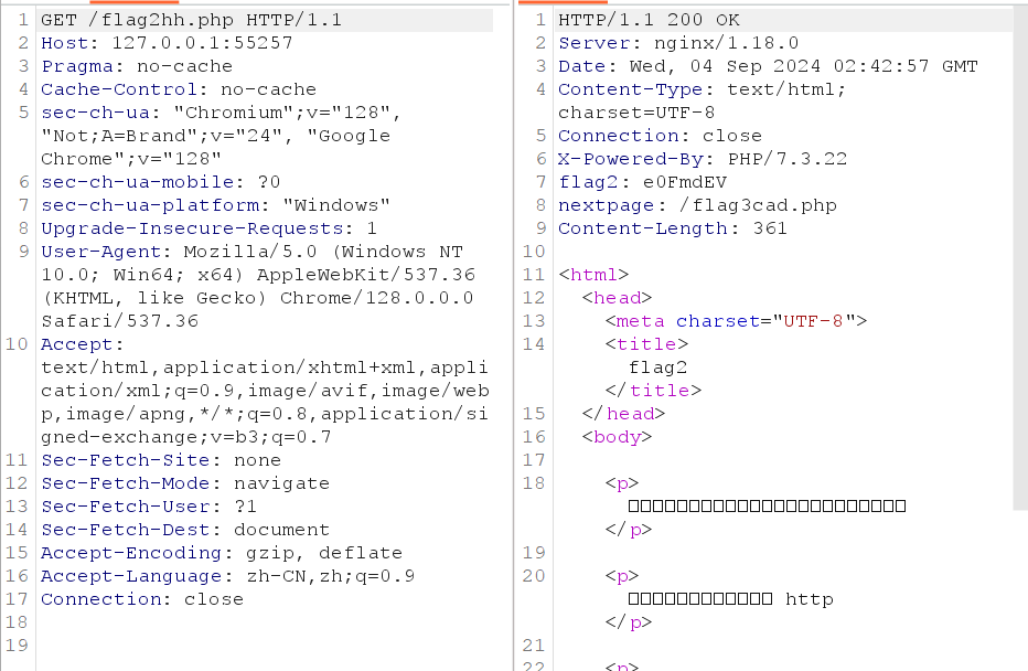 抓包,然后扔到repeater,记下flag2,进入flag3