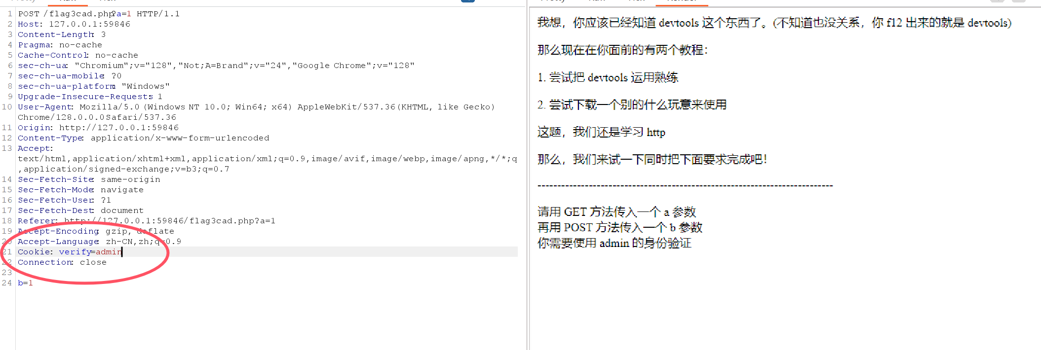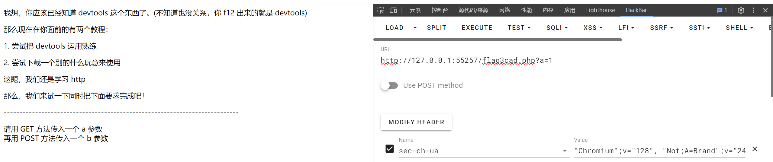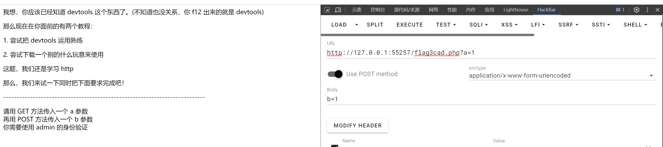 然后用hackbar POST一个参数b
