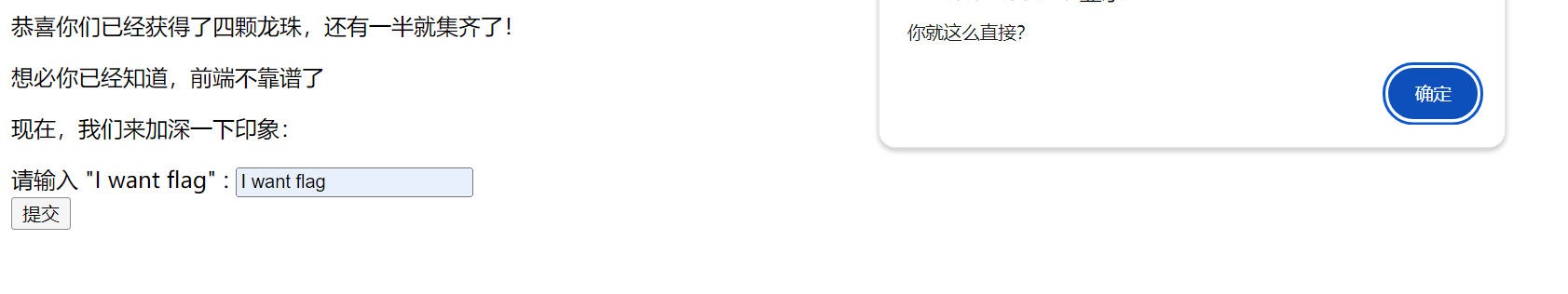 很明显直接输入’I want flag’是不行的。