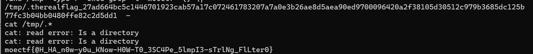 find /tmp -type f -exec grep -l 'moectf' {} \;