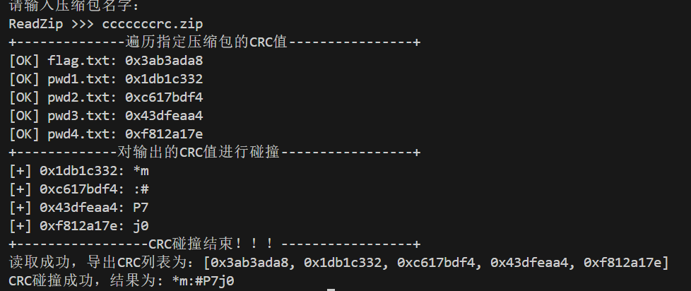 文件夹名字便提示了是属于CRC32碰撞范畴的东西,并且每个txt文件都需要有密码才可以查看,那么直接使用脚本解决。